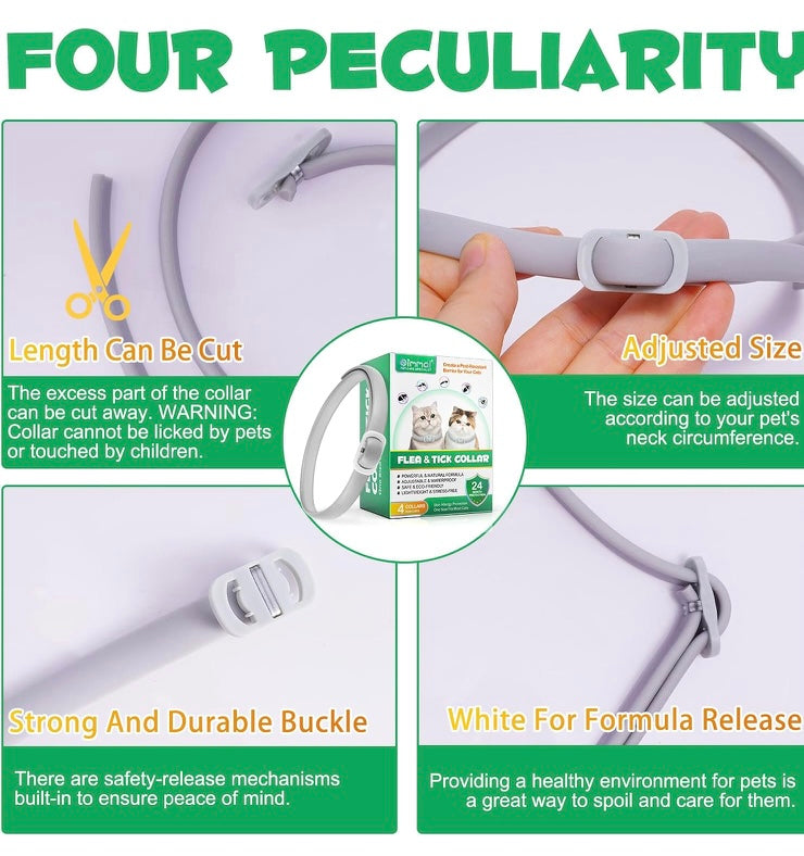 Protect your beloved feline from fleas and ticks for up to 24 months with this 4 pack Flea and Tick Collar. This safe and environmentally friendly collar is waterproof, ensuring continuous protection even in damp conditions. Suitable for all breeds and sizes, this 14.5 inch collar is the perfect solution for your cat's health.