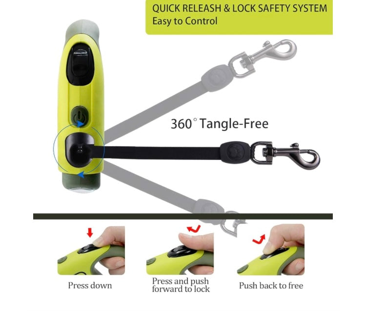 Retractable Dog Leash with LED Flashlight 3 Meters Battery Operated